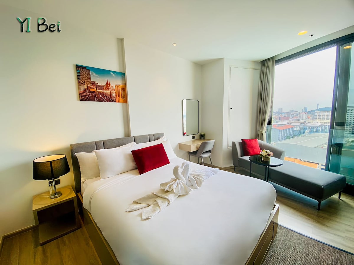 The Base芭提雅、高层海景公寓、市中心、无边泳池、步行海滩5分钟、无边际泳池、可住3人