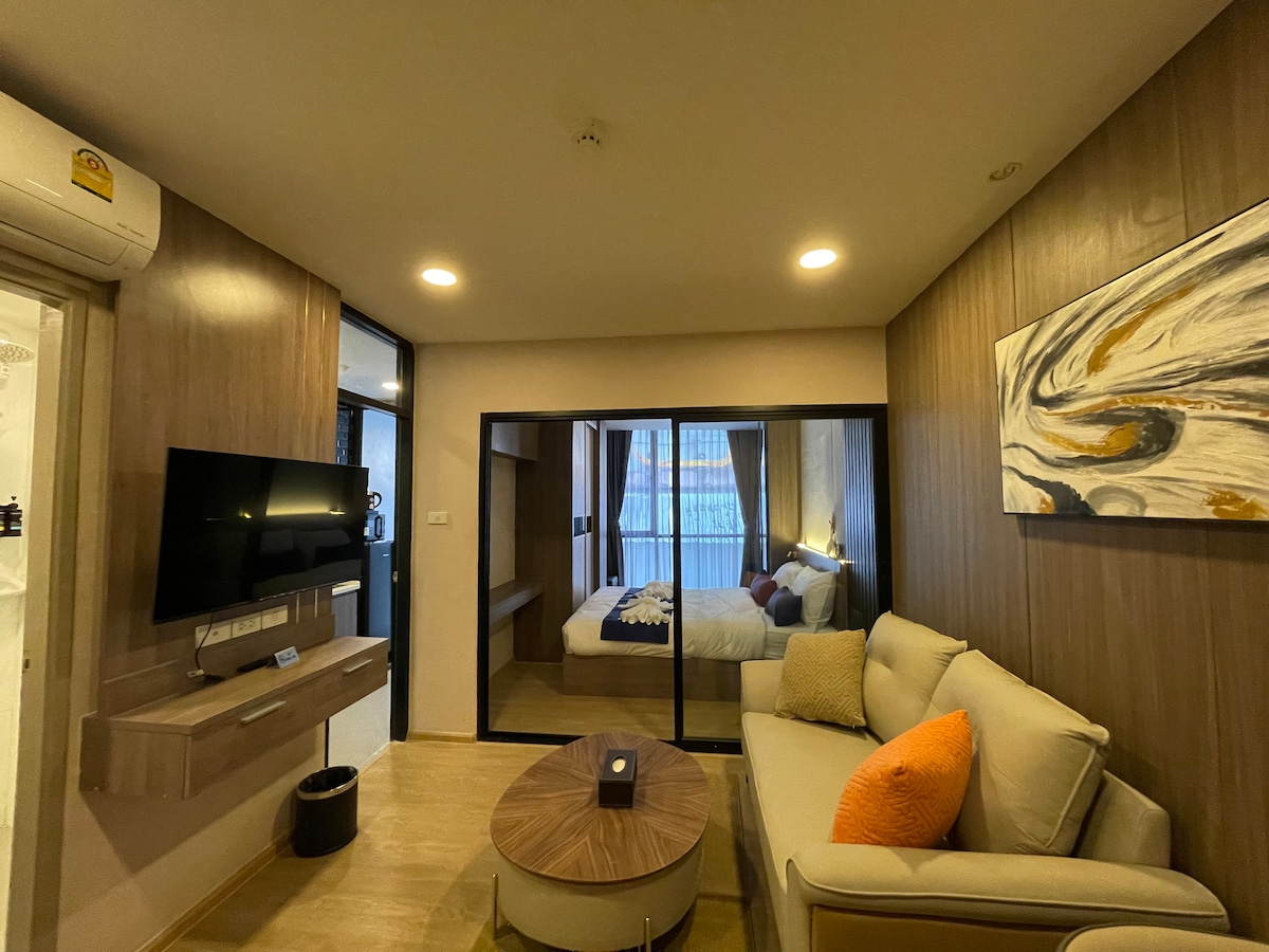 Beautiful accommodation 400m from the beach, the room is 35m.sq., wifi, TV, air conditioning, kettle, fridge, extra bed for a child, wardrobe. There is a restaurant in the premises, which you can use for breakfast, lunch, dinner or just for a cocktail. This stylish accommodation is suitable for anyone who wants to be in an amazing part of Pattaya near the sea The minimum length of stay is 30 days!