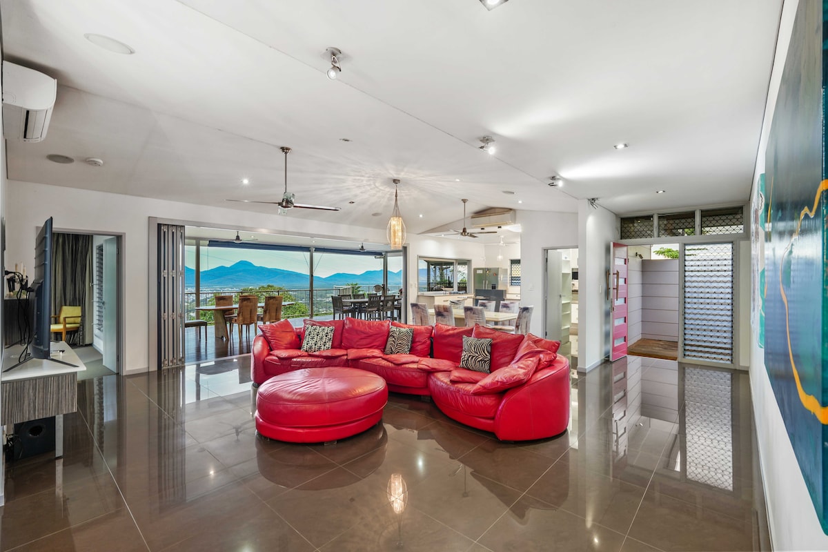 Huge 7 bedroom holiday home in Cairns most desirable location. This is a classic character home of yesteryear is light and airy and there is room for everyone, whether you have a large family or travelling with a group, you can enjoy a meal on the large deck or spend time relaxing in the tropical pool . Please note that this is not a party house and is situated in quiet residential area. This is a marvelous home for a family holiday or business trip ; definitely NOT a drunken weekend!