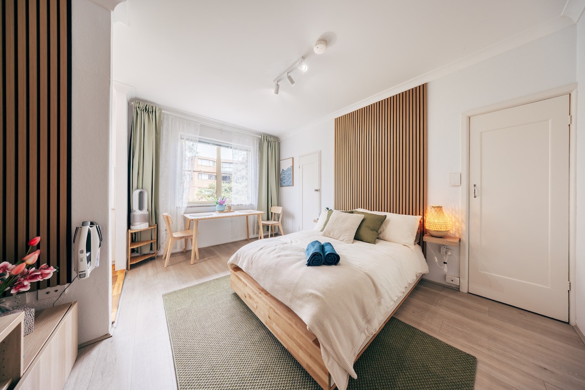 Come home to Neighbourhood curated suites in the heart of Bondi Junction. We've combined luxury and comfort with the work of local artists for a memorable stay. This heritage studio features artist in residence Sam Patterson-Smith, Holly Sanders artwork on textiles and Bronte Goodieson local beachscapes in the bathroom. With everything you need right on your doorstep, it's easy to live like a local at Neighbourhood.