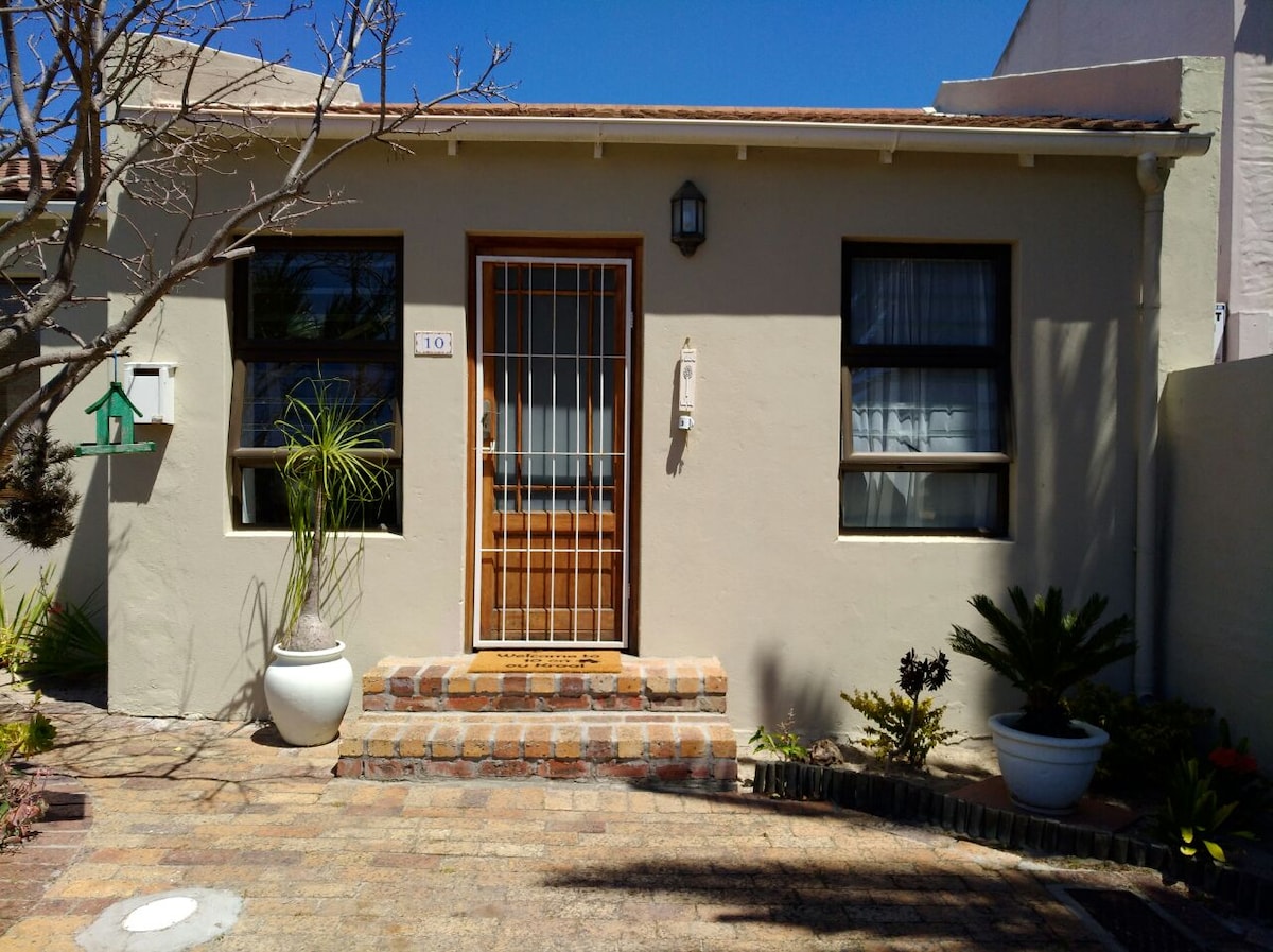 Off-street parking. Entry into premises next to garage door. Sep. entrance with security gate into guest suite which is situated at the rear of the house and is classically furnished. Large windows with natural light looking out into back garden - several species of garden birds. Microwave, fridge, kettle with tea/coffee/biscuits/milk supplied. Ample shelf and hanging space in cupboards. Modern en-suite bathroom with spacious shower. 5 minutes to shopping centre and MyCiti bus. Enjoy your stay.