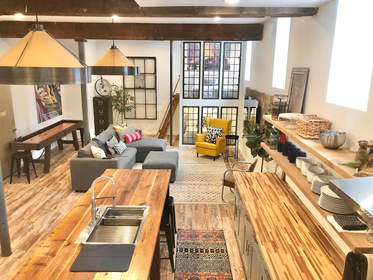 Welcome to our charming 3rd-floor studio located within a Victorian home in the heart of the NE Arts district! This cozy retreat boasts an abundance of natural light streaming in through skylights, illuminating a space adorned with beautiful plants, creating a serene and inviting ambiance. This delightful haven features a warm fireplace perfect for cozying up on chilly evenings. Please note, there is some low clearance near the head of the bed and in the bathroom/kitchen area.
