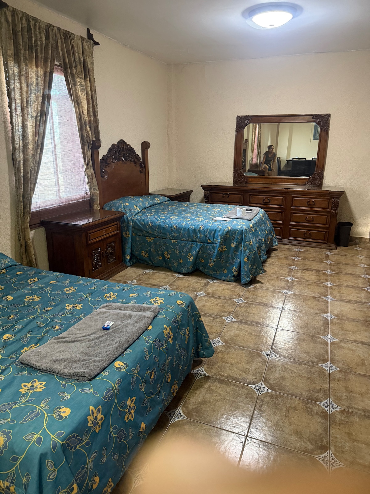 Quédate en este lugar único ubicado en pleno centro y no te pierdas nada. Cerca del Puente internacional y área comercial del centro con farmacia y tiendas Oxxo y todo tipo de comercios, además tu habitación equivocada con aire acondicionado, wifi internet, Frigobar, horno de microondas, cafetería eléctrica, agua caliente todo esto y más para que tú te sientas como en casa