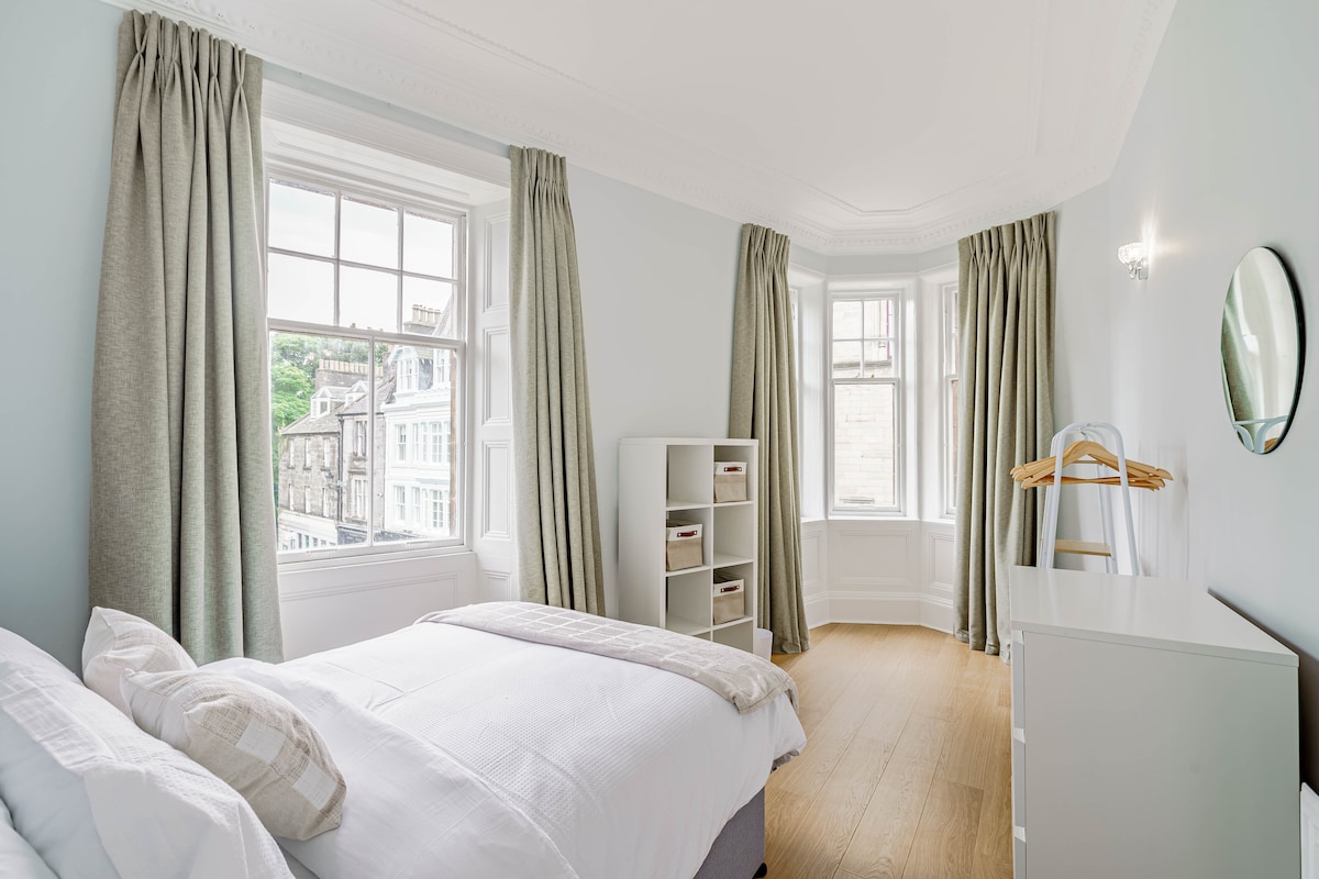 A stunning, newly refurbished main door apartment on one of the most sought-after streets in Edinburgh’s New Town A short, pleasant walk through James Craig’s architecture leads to the City Centre’s shops, bars, and restaurants The property has been fully renovated and redesigned, featuring a brand new kitchen and walk-in shower room Enjoy a widescreen TV with Sky, Wi-Fi, and a quiet view over the cobbled streets at the rear Free hotel-quality towels, linens, and toiletries are provided