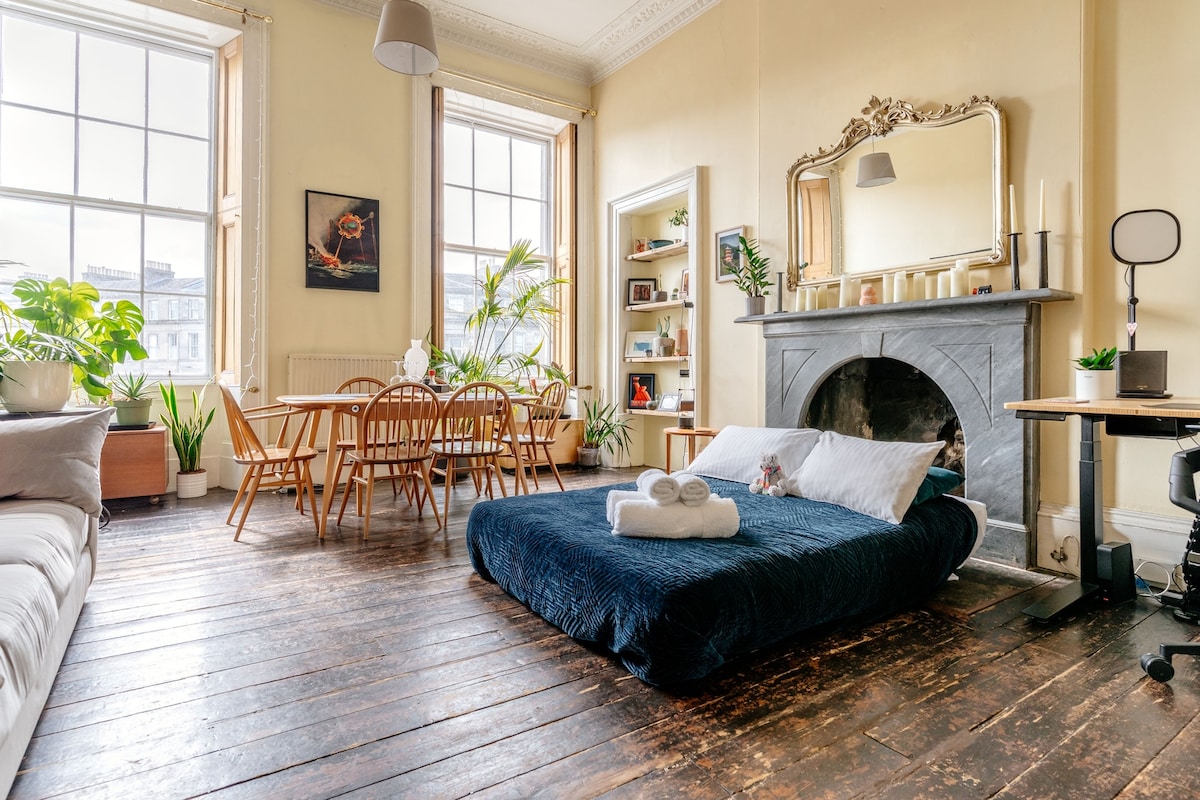 Enjoy a stylish stay at this centrally located, tranquil Georgian apartment, just minutes from train, bus, and tram stops. You’ll have exclusive use of the entire apartment. Situated in the vibrant west end of Georgian Newtown, it offers independent shops, cafes, and restaurants right on your doorstep, with easy access to Princes Street, Stockbridge, and stunning views of Edinburgh Castle just outside. This apartment is ideal for couples, solo adventurers, business travelers, and families.