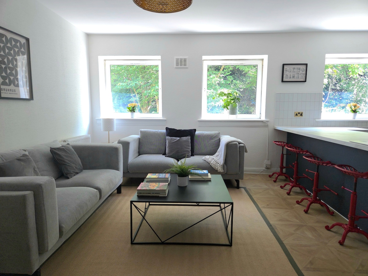 Note: Extensive cleaning between guests. Newly refurbished basement flat just 10 minutes walk to the East end of the city centre and 15 minutes walk to Waverley train station. New council regulations in July 2023 means there is now no free on street parking. The property comprises of two bedrooms-one room with super king bed and one with double bed-, bathroom, lounge and kitchen. Close to tourist attractions- Holyrood Palace, the Parliament and Royal Mile are around 5 minutes walk.