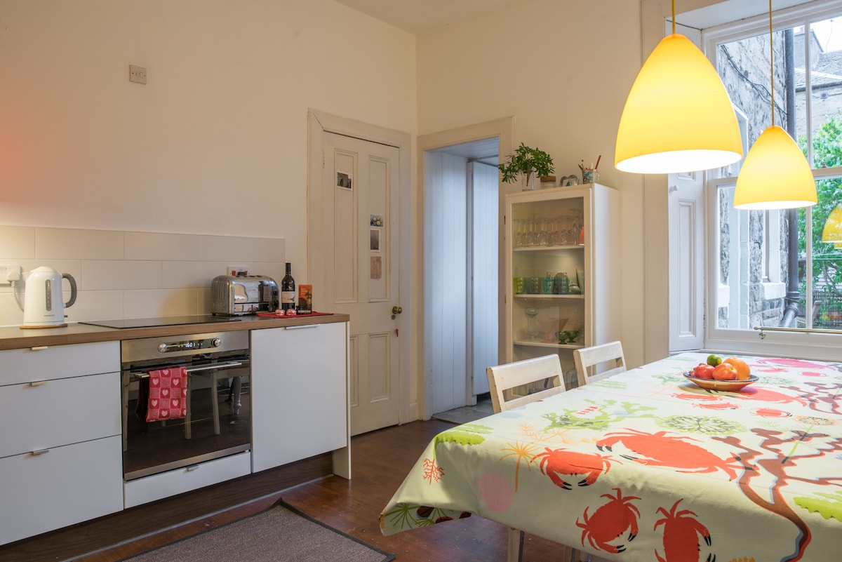 Enjoy a stylish stay at this centrally located, tranquil Georgian apartment, just minutes from train, bus, and tram stops. You’ll have exclusive use of the entire apartment. Situated in the vibrant west end of Georgian Newtown, it offers independent shops, cafes, and restaurants right on your doorstep, with easy access to Princes Street, Stockbridge, and stunning views of Edinburgh Castle just outside. This apartment is ideal for couples, solo adventurers, business travelers, and families.