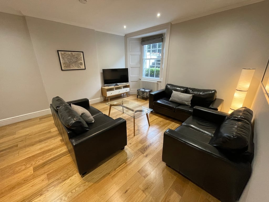 This charming apartment is in the heart of Edinburgh's New Town. The location could not be better to explore everything this wonderful city has to offer. The apartment is on the lower ground level of a Georgian era building. It is accessed via a private entrance and has a private garden to the rear. All amenities are at your door step and Edinburgh's historic landmarks are within walking distance. Princes Street is a short walk up the hill and Stockbridge is less than a 5 minute stroll.