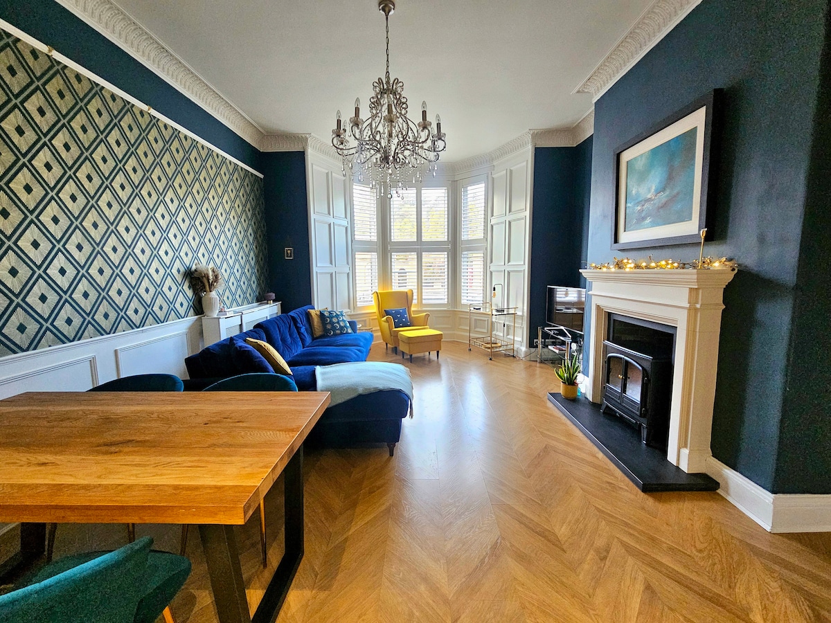 ✨ Stylish main-door Edinburgh flat in a convenient south-side location with easy access to the city centre. Two bedrooms — luxurious super-king master and cosy double box room. Elegant bay-window lounge with ornate cornicing, centre rose and decorative fireplace, brand new wooden herringbone flooring and a stylish fully equipped kitchen. Visitor Levy included (from Summer 2026). Free public parking approx. 10-minute walk away.