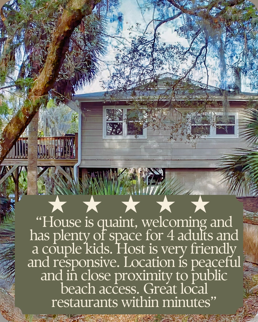 The Chaika is a lovely house on a secluded lot at the end of a street with no other house adjacent and no thru traffic. Beautiful live oak in front gives a nice view out the glassed-in porch. Only a short 5-minute walk to the beach on a rarely-used sandy drive. 5-minute drive to St. Helena sound for calmer waters and great beach combing. Chaika means "seagull" in Russian - read the owner bio for info on why that name. A great house for families and friends to connect! And we are pet friendly.