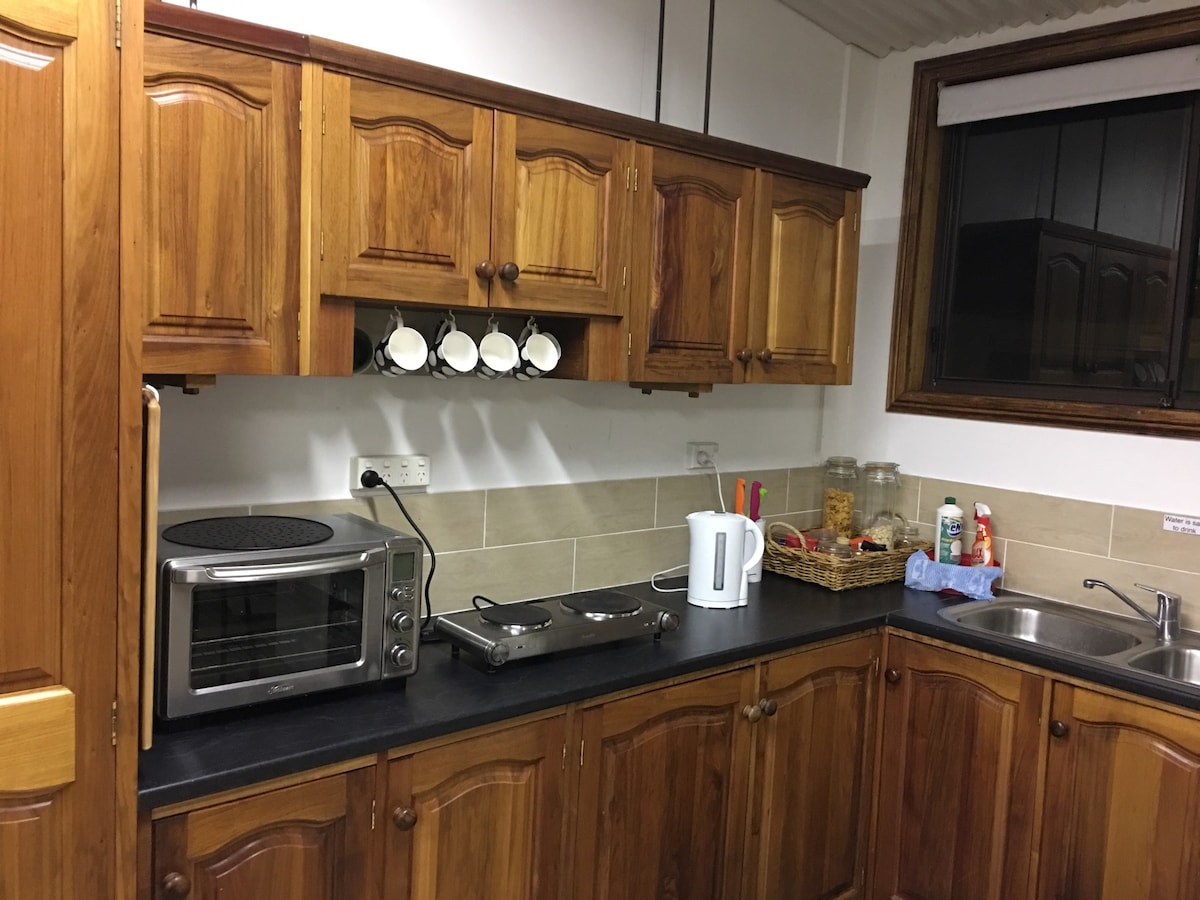 Roses Garden Studio is a sophisticated and very private self-contained space. Tariff includes breakfast provisions and a well equipped sideboard kitchenette with fridge, microwave, coffee maker, toaster and kettle. A 10 min walk to the CBD, beachside restaurants and foreshore BBQ area. A 7 min drive to the hospital and university campus. Well located for daytrips in the region. Also a great space for laptop work (WiFi and Smart TV). Laundry by request.