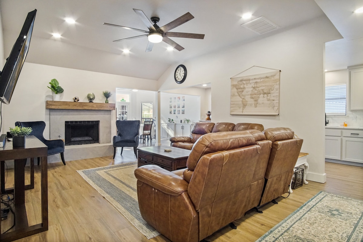 俄克拉荷马城(OKC)大型小木屋,带游戏室、3间客厅和健身房