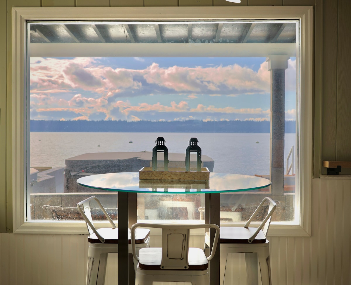 豪华海滨、雷尼尔山景观、热水浴缸和单间公寓