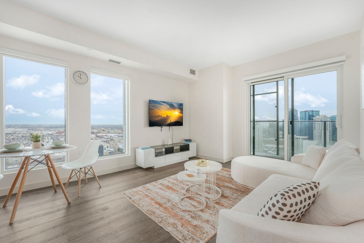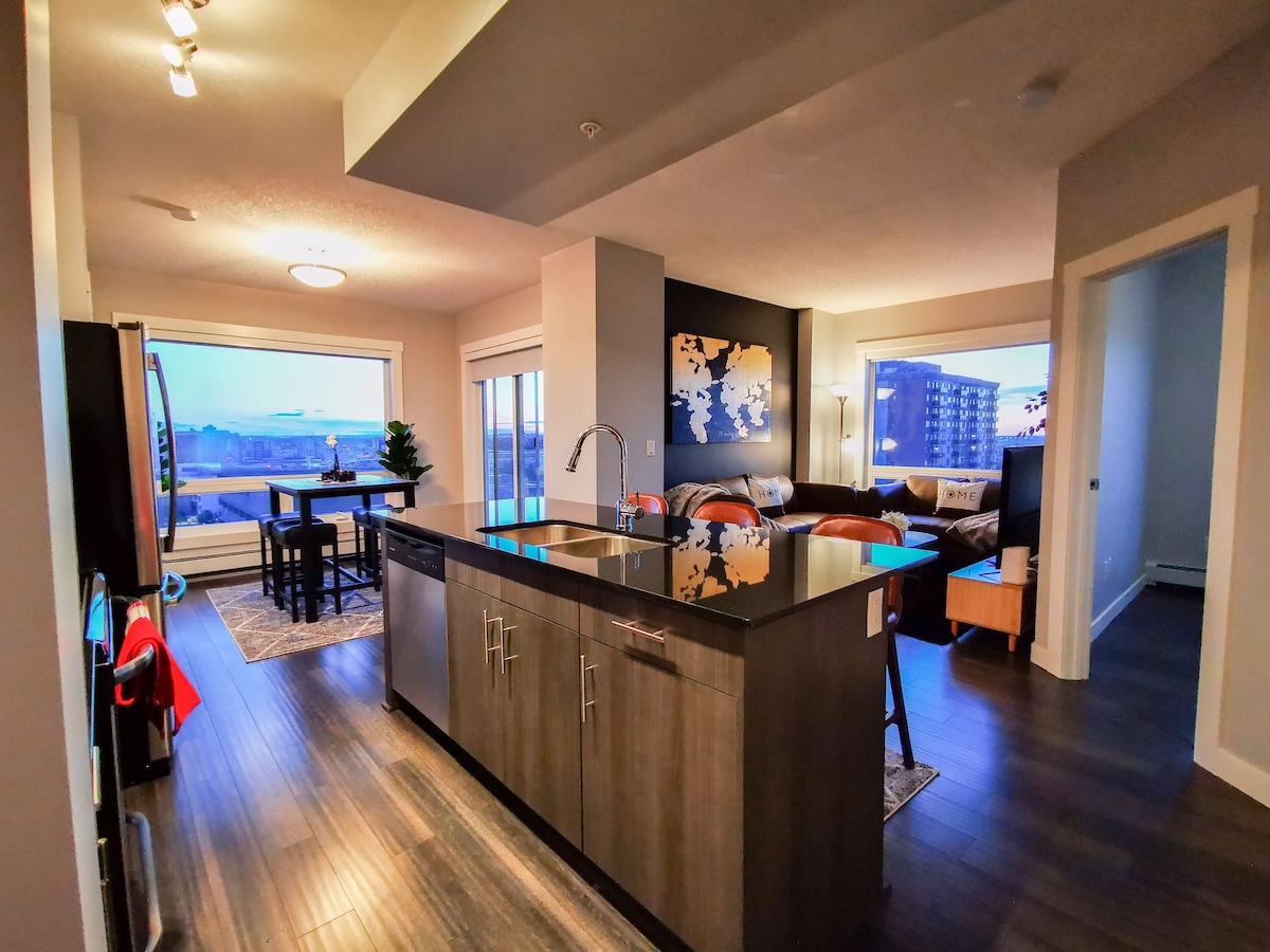 Experience Downtown Living With Unmatched Views! ✔ 5-minute Walk From Rogers Place ✔ Secure Underground Parking ✔ Fully Stocked Kitchen ✔ King Bed for Extra Comfort ✔ 1 Full Bathroom ✔ 60" Smart TV ✔ Fast WiFi ✔ On-Site Gym ✔ In-Suite Laundry ✔ Work Desk ✔ Coffee Bar ✔ Close To The Best Restaurants & Nightlife ✔ Outdoor Seating Area With BBQs ✔ Lounge/Event Room Available In The Building ✔ Tons Of Natural Lighting ✔ Complimentary Coffee ✔ Complimentary Shampoos ✔ Blinds On Each Window