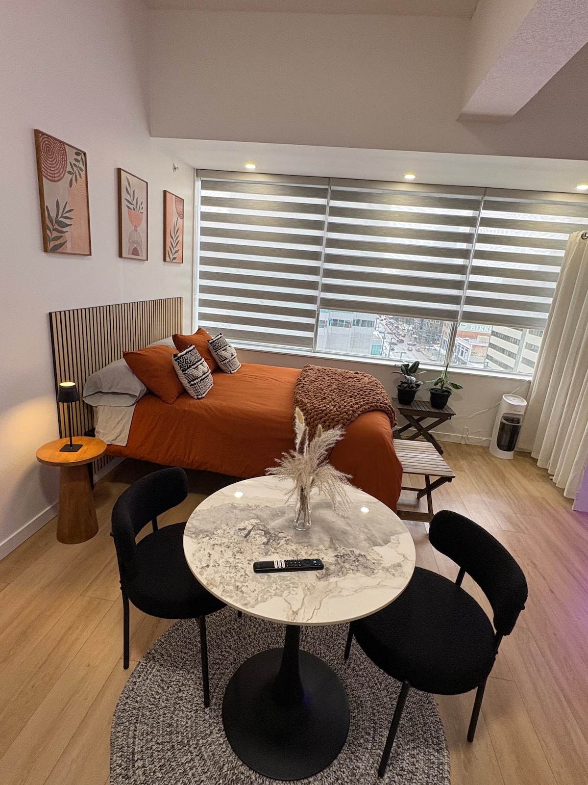 Experience upscale urban living in the heart of downtown Edmonton! This stylish loft comfortably sleeps 3 and is perfect for business travelers, couples, or small groups looking for a high-end stay. Enjoy top-tier amenities, including premium Miele appliances, a Sub-Zero refrigerator - all set within a sleek, open-concept space that blends industrial charm with modern elegance.