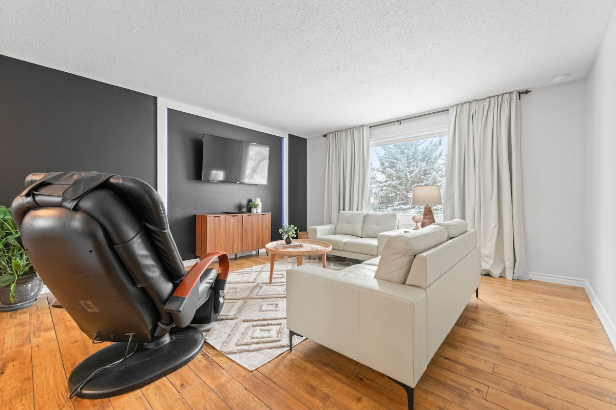 🏡 Key Features ✔️ Bright, spotless legal basement suite ✔️ 2 bedrooms with queen beds & hotel-style linens ✔️ Japanese-style futon for 5th guest only – extra use by request ✔️ Kitchen with milk Keurig coffee maker ✔️ Cozy living room with 58" Smart TV ✔️Stylish indoor hanging chair ✔️ Private entrance & easy self check-in ✔️ Free street parking or driveway spot 📍 Nearby ✔️ 2-min drive to shopping center ✔️ 15-min drive to Rabbit Hill Ski Resort ✔️ 20-min drive to YEG ✔️ 20-min drive to WEM
