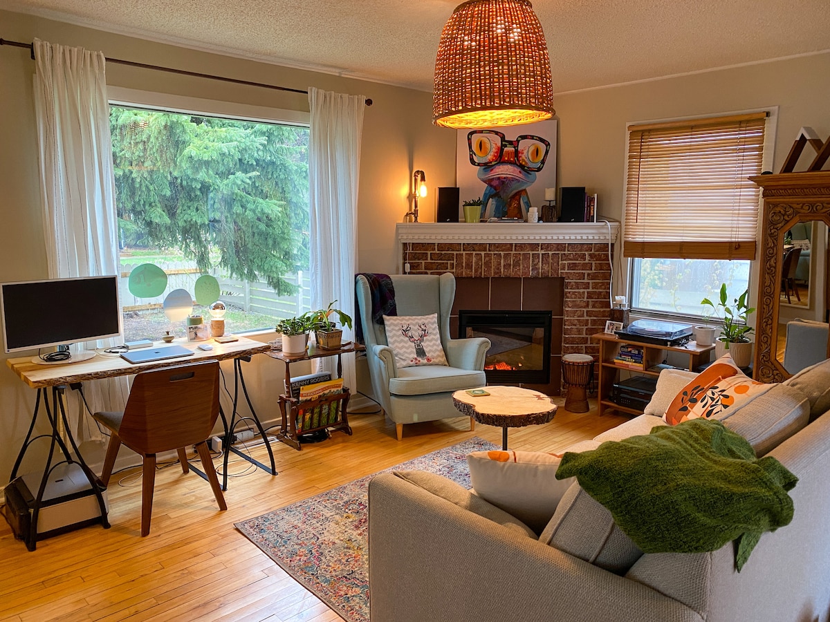 This newly renovated, bright, 1,100 square foot, two bedroom plus attic loft is located in the heart of Old Strathcona. Located just off Whyte Ave, there are restaurants, coffee shops, pubs, bars and trendy shops all within walking distance. Discover nearby walking and biking trails in Edmonton's river valley (North America's largest stretch of urban parkland) only two blocks away with access through Mill Creek Ravine. This property is located ten minutes from the University of Alberta Hospital, Cross Cancer and Downtown. The safety of our guests is our number one priority. This suite has a private entrance, a separate furnace, independent air filtration and air supply systems. Enhanced cleaning and disinfecting practices have also been put in place for your safety. This bright and cozy two bedroom plus attic loft has two queen size beds, and four single loft beds for the kids. Please note that this is a main floor residence only. There is a separated, self contained, legal basement suite below and the owners live onsite.