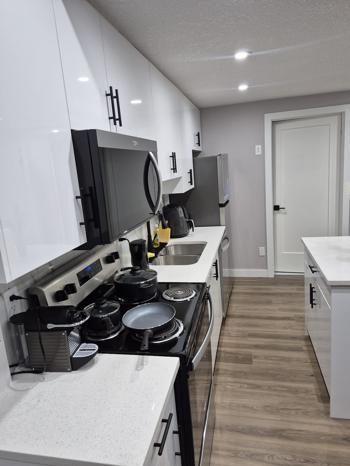 Centrally located brand new modern oasis with separate entrance and the entire place to yourself. Steps to NAIT, Royal Alexander Hospital, Kingsway mall and 10 minute drive to downtown and Rogers Place. Fully furnished with all the necessary items including a kettle, toaster, coffee maker, dishes, pots and pans.
