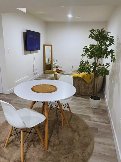Spacious & Cheap Entire Basement Apartment Welcome to our cozy basement, ideal for individuals or couples. Features: • Bedroom: Private, spacious, and well-lit. • Living Room: Comfortable and relaxing. • Bathroom: Modern fixtures and bath. • Dining/Study Area: Versatile table with seats. • Laundry: In-unit washer and dryer. Walking distance to shops and bus stop. IMPORTANT: Kitchen and Laundry is shared. By booking, you confirm that you have read and accepted all the property description.
