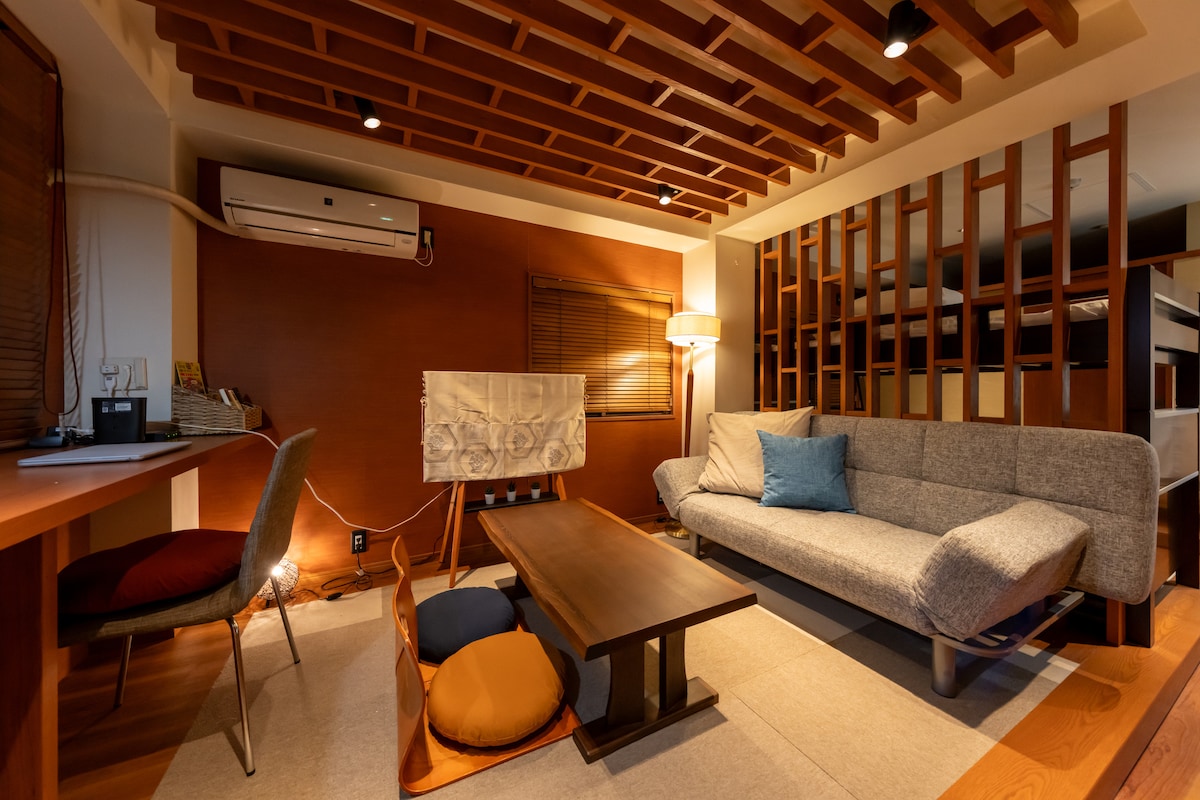 JR総武線「亀戸駅」「錦糸町」より徒歩10分。 浅草・スカイツリーエリアや、秋葉原・新宿へのアクセスも抜群です。 徒歩圏内には大型商業施設「カメイドクロック」や「亀戸天神」があり、利便性と下町情緒を兼ね備えた好立地です。 宿泊先について ●この宿の魅力 国内建築賞を受賞した デザインと機能美が調和する一棟貸切ヴィラです。 2つのフロアを丸ごと独占できるため、まるで東京に自分だけの隠れ家を持ったかのような、プライベートな滞在をお楽しみいただけます。 ●こだわりのデザインと快適性 モダンな和室スタイルを採用し、ご家族やグループでもゆったり寛げる空間です。 広々としたバスルームや自炊可能なキッチンを完備し、都内では希少な「ペット同伴」も可能です。 観光から長期滞在まで、洗練された建築空間で暮らすような旅をご提供します。