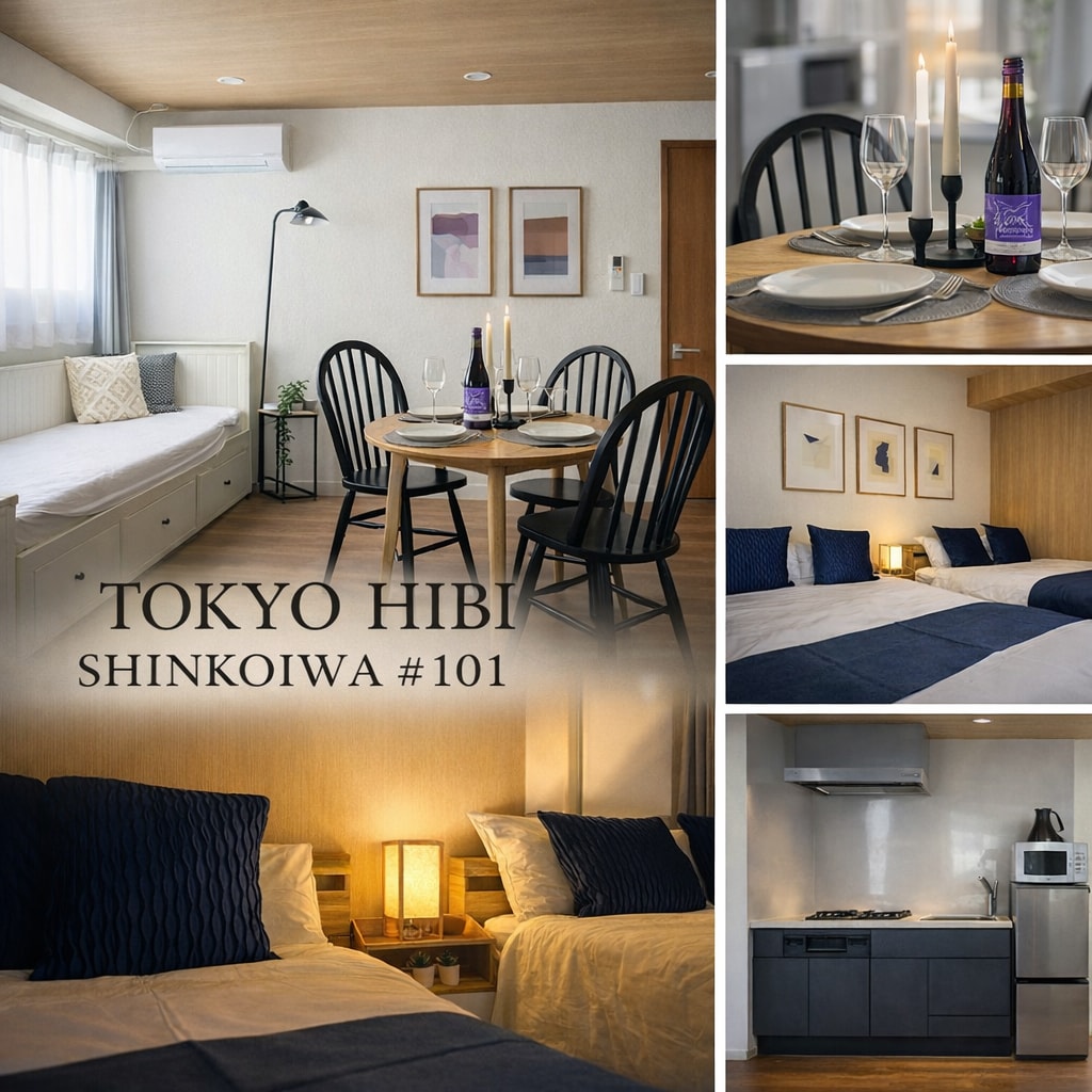 こちらの広々とした静かなお部屋で、日常の心配事を忘れましょう。こちらの広々とした宿泊先で、快適で開放的な空間を満喫しませんか。 この居心地のいい空間のお部屋は、ラーメン屋、セブンイレブン、寿司屋、スーパーマッケトなど、様々なアメニティがすぐそばにある大変素晴らしい立地です。 小岩駅から徒歩3分。小岩駅は賑やか、魅力的で、活気のある場所です。 ★無料Wifi★ - 成田空港までバスで70分 - 羽田空港まで電車で40分 スペース - 23平米 ワンルーム - 布団セット2つ - ソファーベッド、最大4名まで宿泊可能 - エアコンつき - 洗濯機 - ドライヤー - 鏡 - 電気ケトル - フライパン - 皿 - 電子レンジ - ボディソープ、シャンプー、リンス - タオル 小岩駅近辺の人気エリアで現地の日本人になった気分で生活を楽しんで頂けます。 ゲストの立入り範囲 お部屋ご利用頂けます。ルームシェアではありません。他人と部屋を共有することは御座いませんので、ご安心下さいご安心下さい。リモートワーク利用や長期滞在も大歓迎!お気軽にお問い合わせ下さい。