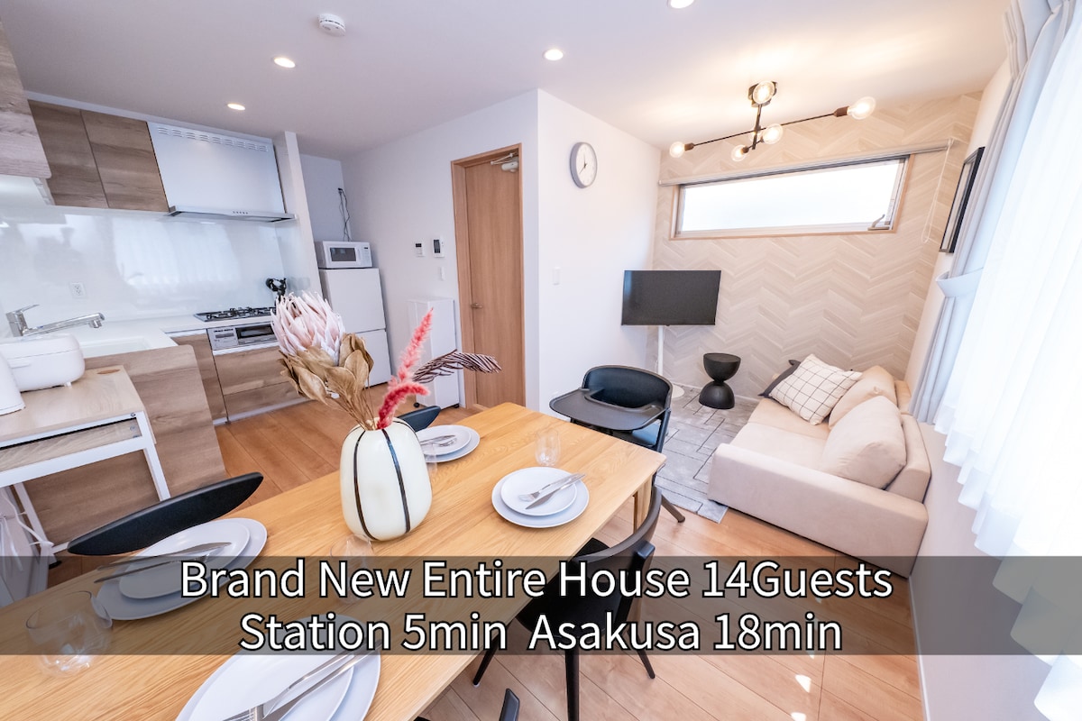 【新年特惠】全新整栋包栋|步行5分钟到车站|浅草18分钟・晴空塔16分钟|亲子友好|可住14人