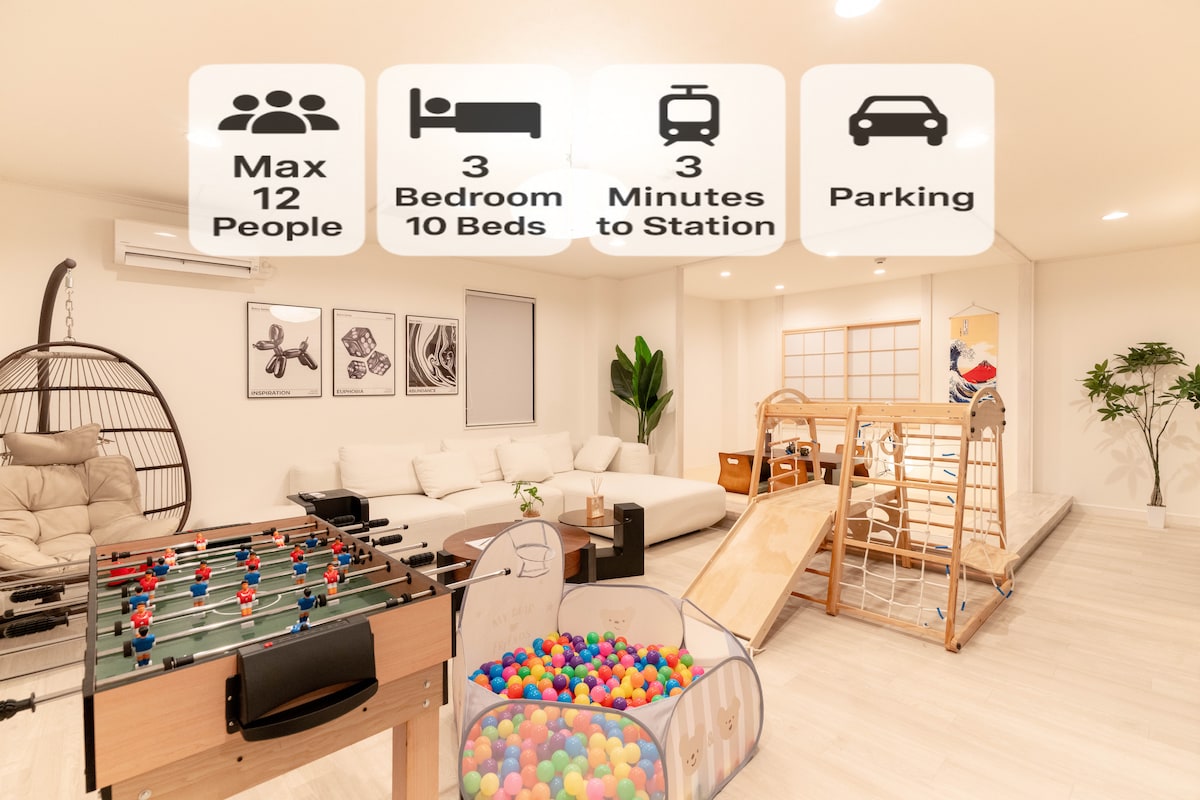 这是一栋经过一年精心翻新独栋房屋。一楼设有充满趣味的主题房间和阁楼,适合儿童玩耍。二楼是日式风格的空间,让您在放松的同时体验日本文化。房屋基于日式传统的紧凑型结构(50平米)结合设计将空间最大化利用。在这里您可以体验东京本地的住宅形态、感受日式设计的魅力以及精致而高效的生活方式。 我们配备了戴森吹风机和BALMUDA烤箱等高品质家电,宽敞的厨房非常适合长时间入住,为您带来舒适的住宿体验(附近有收费停车场) 从青砥站(京成本线)步行6分钟即可到达,搭乘电车15分钟内即可抵达东京晴空塔、浅草、上野等部分热门景点。也可以从成田机场和羽田机场直接到达,非常方便。不同于市中心的繁华喧嚣,这里坐落在充满怀旧气息的下町社区,让您感受地道的东京生活。沿着荒川河岸散步,体验别样的静谧时光。在这片安静的住宅区,远离都市的喧闹,发现属于您的“东京秘境”,尽享悠闲与舒适的居住体验。 /亲子友好 + 小朋友专属角落 /推荐5人以内入住 /配备厨房/全新品牌家电/洗衣机・干燥机/免费Wi-Fi /周边便利店、餐厅、超市齐全,生活便利