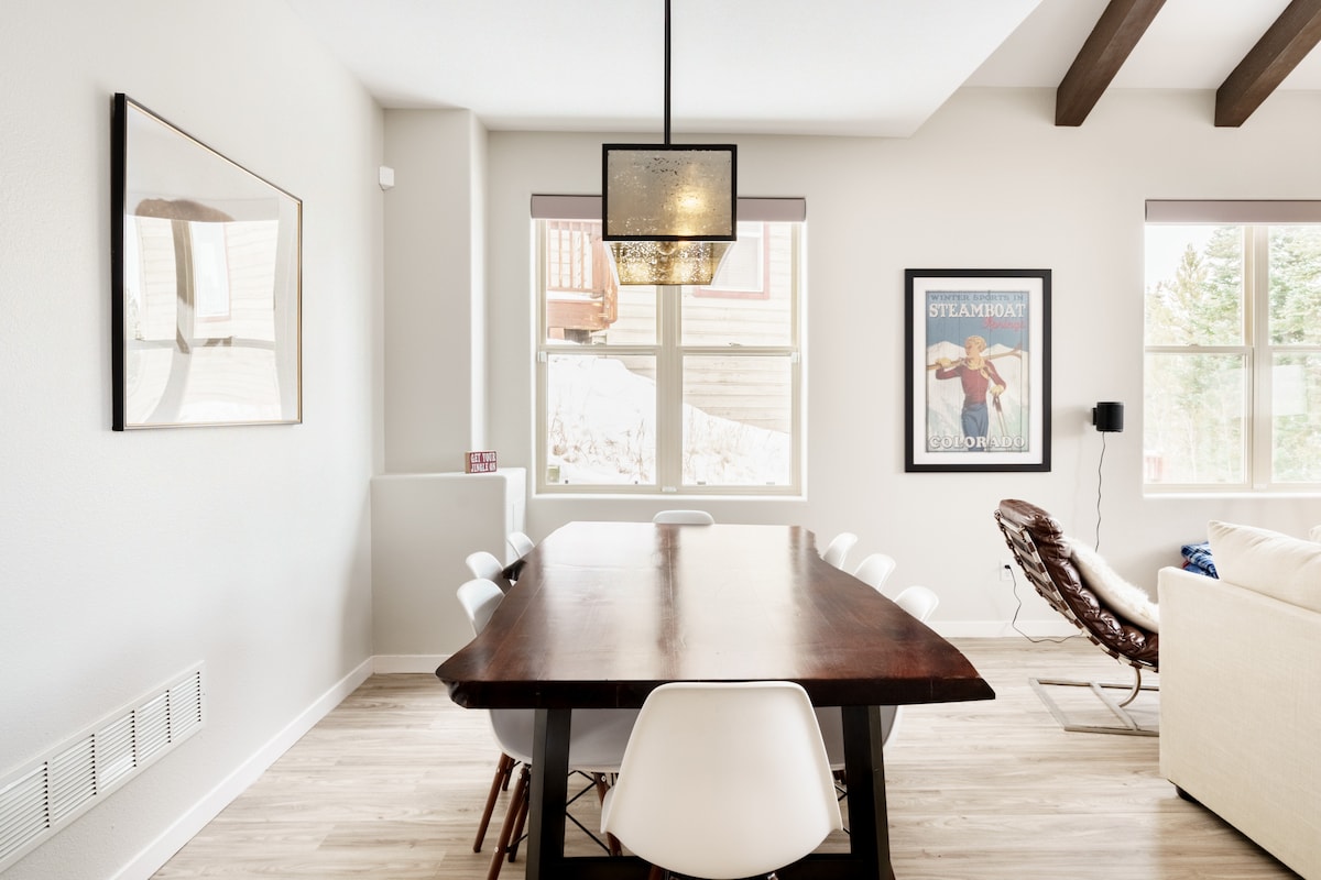 Wake up to stunning sunrises over Ptarmigan Peak at this upscale townhouse with handy ski gear cubbies and a game room in the loft. Set off on the hiking trail right outside the door, carve up the nearby slopes, then unwind in the outdoor hot tub. With two master suites, our house is perfect for 2 families with children. We have a game room in the loft with numerous options for all ages. There is a hiking trail just out the front door, bus stop nearby on the free summit stage bus system, where you can reach the nearby outlet shopping or world class ski resorts. In the summer bring the golf clubs and enjoy Raven at Three Peaks golf course in Silverthorne or sailing and boating on the Dillion and Green Mountain Reservoirs. This property supports keyless access powered by August home. No access allowed in Owner lock off closets/rooms. We are available by phone. Hiking, cross-country skiing, and snowshoeing are all available on trails nearby. Skiing is right next door at Breckenridge, Keystone, Copper, A-Basin, and Loveland. Ski Cooper, Vail, Beaver Creek and Steamboat are easy day trips. There is a free bus system in summit county and there is a bus stop less than a 1/4 mile from the house. The outlet stores are less than a mile from the house along the Blue River in downtown Silverthorne.