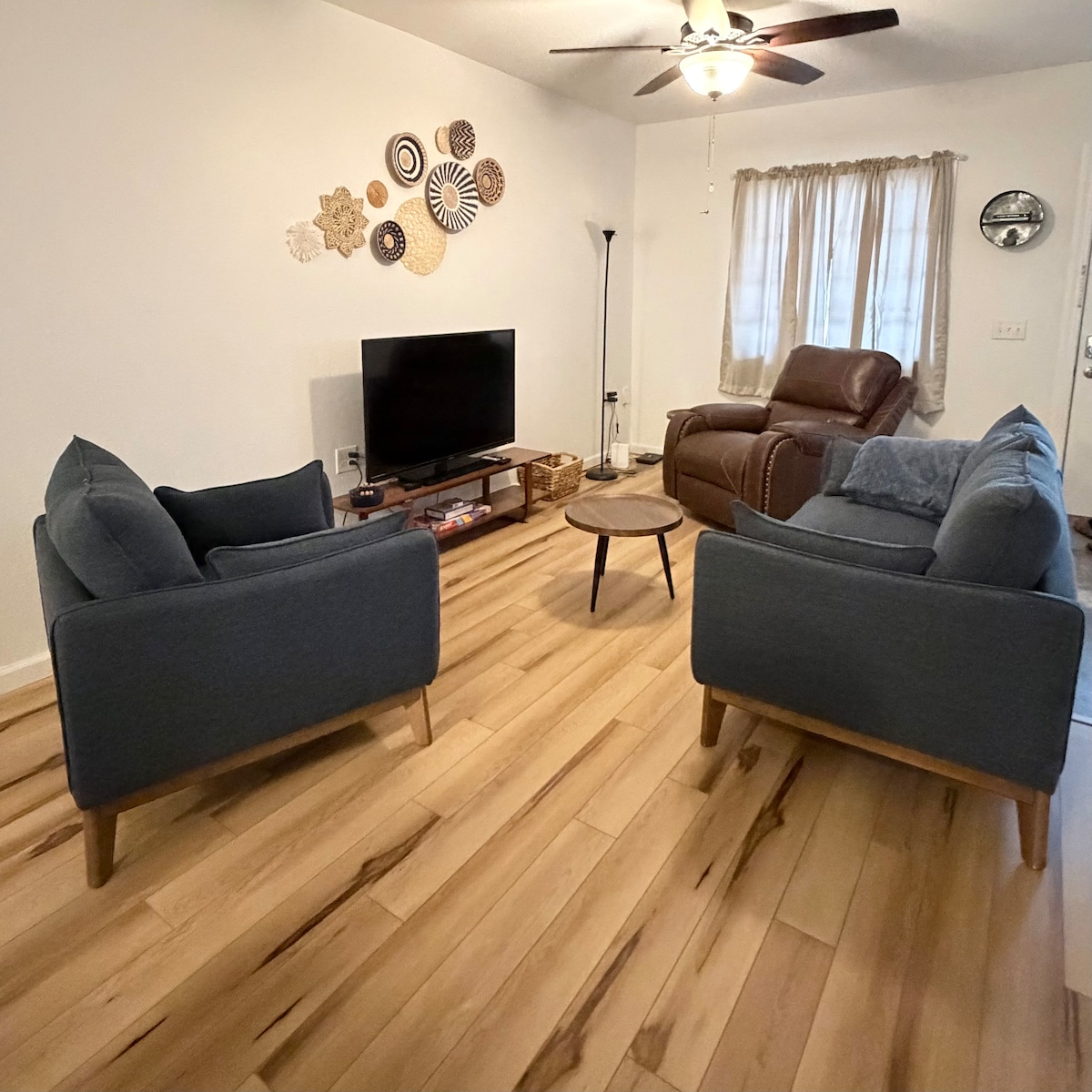 Welcome to @RidingHeights – our cute mid-century modern/bohemian style bungalow home. The décor is colorful, unique and functional. It is 900 square feet featuring an open concept, large kitchen and large bedroom with a king sized bed! The house is located a half block away from the Rock Island Trail, it is the longest trail in the area. The Heights Strip is only minutes away! Two street bikes are provided by us for your convenience. Message us about bringing a pet and we will consider them.
