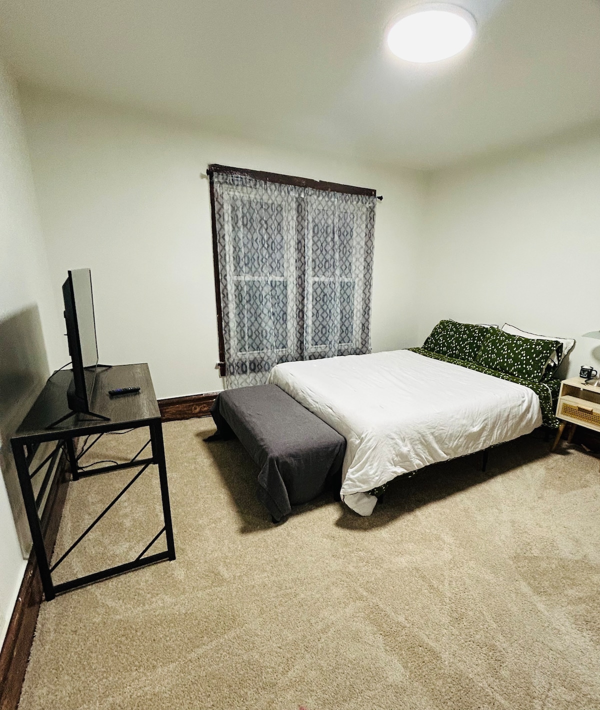 Step-saver ranch home (under 900 sq ft) situated on a quiet street in West Peoria. Enjoy the small community vibes while being just a short drive from everything Peoria has to offer. One mile to Bradley University! Three miles to OSF! Three miles to Peoria Civic Center! This home features two bedrooms, one bathroom, a kitchen stocked with all the basics for cooking, and cozy living room with smart TV. Luxury vinyl flooring throughout. A selection of games and books also available.