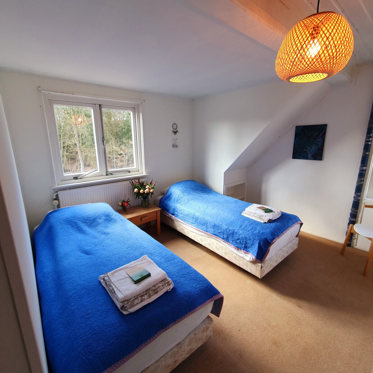 In de bovenverdieping van ons huis aan de rand van het dorp Boskamp in de gemeente Olst is onze B&B gevestigd. U heeft een eigen ingang naar boven met 1 slaapkamer, een gezellige kamer met ingebouwde moderne keuken en een eigen badkamer met heerlijk zacht geheel kalkvrij water en toilet. U heeft een bijzonder vrij uitzicht over de weilanden, bossen en erg veel privacy. U heeft de mogelijkheid om in alle rust buiten in het zitje te genieten. (het ontbijt wordt gratis door ons verzorgd)
