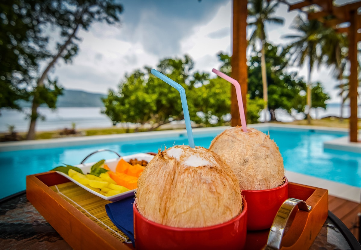 Unwind in a private luxury suite at Reflections Retreat, set on the peaceful shores of Havannah Harbour. Each spacious suite features king or twin bedding, a modern ensuite, and a private deck with daybed. Guests enjoy access to the oceanfront pool, communal kitchen and dining areas, and open-air pavilion. Ideal for couples or solo travellers seeking a quiet island escape close to Port Vila. Property also offer Free use of kayaks, paddle boards, snorkeling equipment.