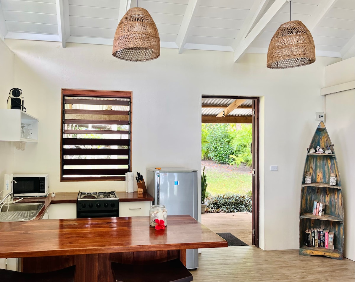'Away from it all' . Nestled at the base of a mountain, and across the road from the ocean, cocoloco presents a tranquil unique setting to dissappear to. Cocoloco is a fully furnished, spacious and flowing house by itself amongst virgin tropical bush. Nearby activities such as fishing, diving, hiking, boating, snorkeling, restaurants, cultural tours, and more are Havannah harbours delights.