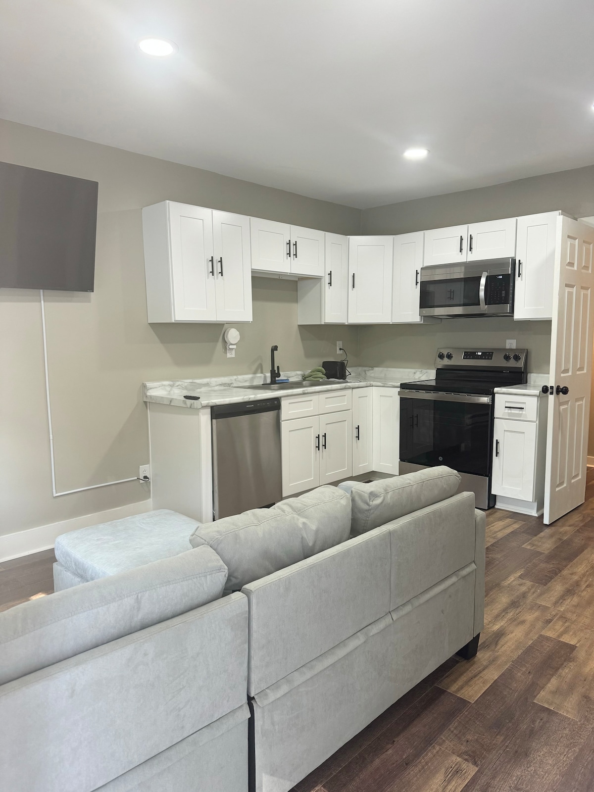 Welcome to our cozy one-bedroom apartment in Shelbyville, the perfect place for your next visit to this charming town! Designed for comfort and convenience, this apartment features a queen-sized bed, a spacious living room for relaxing, and all the essential amenities you need for a hassle-free stay, including air conditioning, high-speed Wi-Fi, and a full-size washer and dryer.