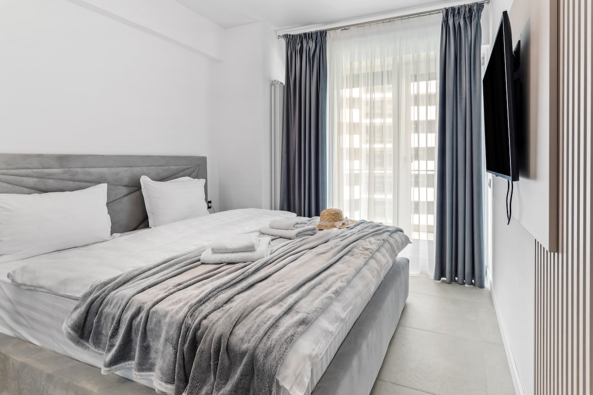 Oasis 47 Apartment is situated in Odyssey by Alezzi Resort ( the newest resort open 2025). This cozy one bedroom apartment offers accommodation for 4 adults or 2 adults and 2 children. The distance to the beach is around 300 meters and the beach area is one of the most wanted in Mamaia Nord Resort. In walking distance from the beach, restaurants. * Free access to SPA& playground * Free access to pools all year long & fitness area * Free wi-fi & parking * Coffee/Water on us! * 24/7 Support