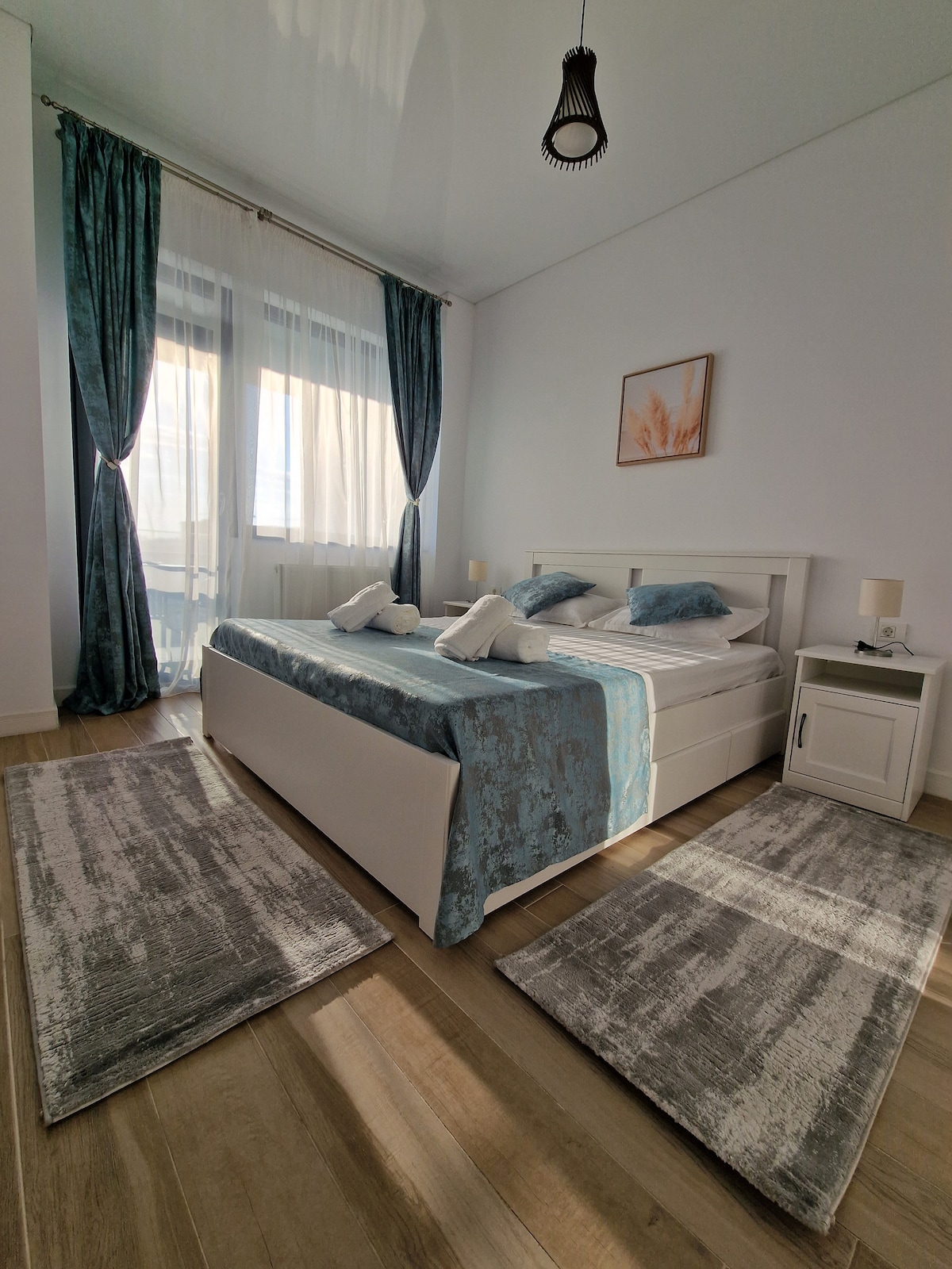 Modern, cozy studio just 5 minutes from 3 Papuci Beach ( zoom beach). Perfect for couples, it features a king-size bed, AC, kitchenette, flat-screen TV, and private parking. Ideally located on the main boulevard, with easy access to: • Supermarkets (Mega Image – 3–5 min walk) • Restaurants, cafés, and beach bars • Pharmacy and medical center nearby • Public transport and quick access to the city center Enjoy a peaceful stay near the sea, with everything you need for a comfortable getaway.