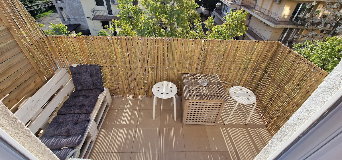 Situat într-un cartier plin de verdeață, la doar 10 minute de centrul orașului și 15 minute de plajă, apartamentul ofera toate facilitatile pentru a va putea simti ca acasa. Combina confortul de la bloc si avantajele unei case, si bucura-te de spatiile de relaxare din curte, zona de gratar dar si de o terasa spatioasa, perfecta pentru a servi cina sub lumina calda a apusurilor de la mare.