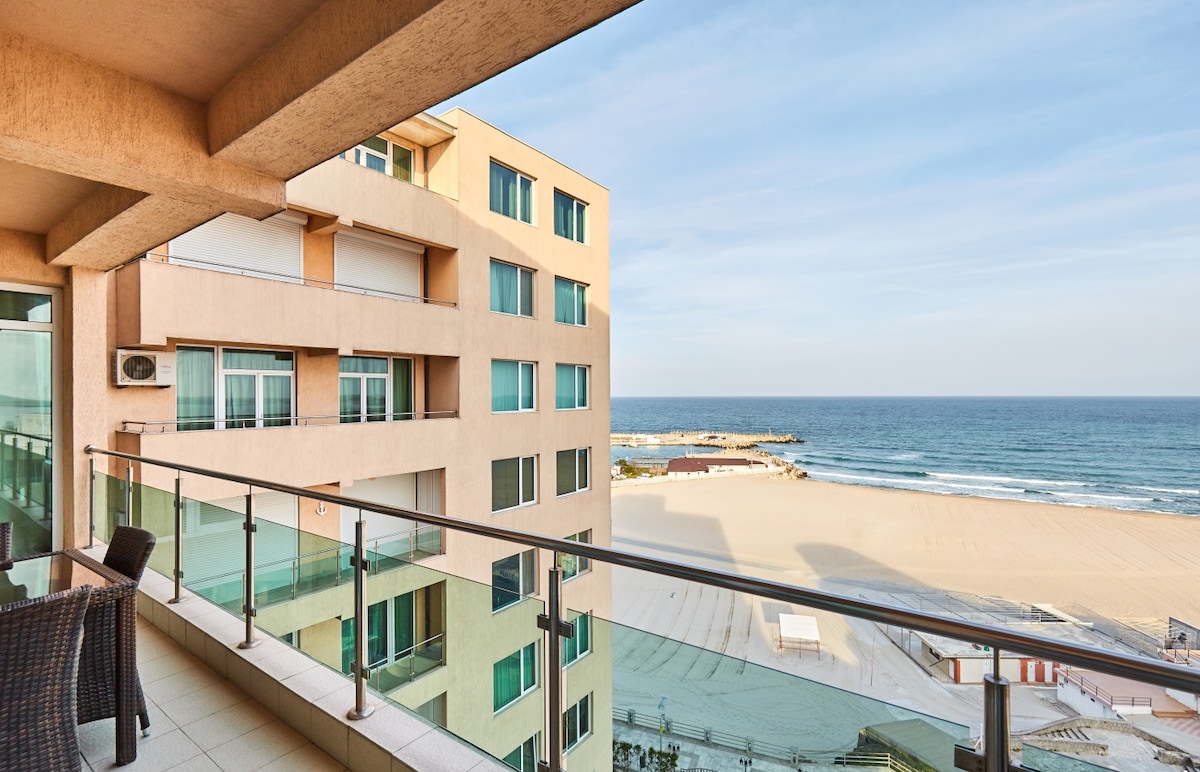 Enjoy the sea breeze in the wonderful waterfront apartment, with a spacious living room, a cozy bedroom, a full bathroom and a fully equipped kitchen. Drink your complimentary morning coffee on the balcony, watching the waves. Enjoy a lovely lunch with your family in the dinning area. Relax after dinner watching TV. Your seaside vacation will be a memorable one.