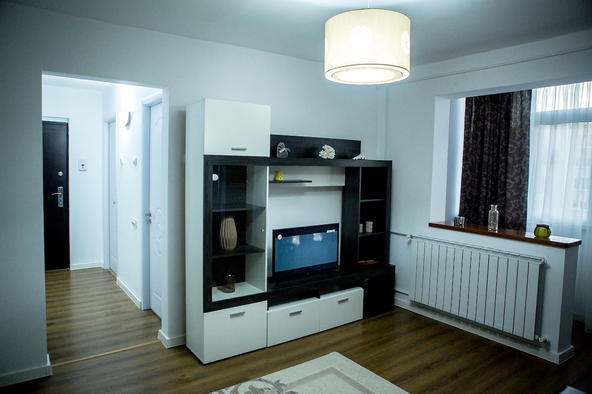 The ”Modern Apartment” is located in the peninsular area of Constanta, only 40 m away from Modern Beach, next to the Ibis Hotel. Fully renovated in the summer of 2017, equipped with home appliances and new furniture, the apartment is designed to create a pleasant and relaxing environment, ideal for a holiday on the Black Sea. It consists of 3 rooms (living room + 2 bedrooms + 2 bathrooms + kitchen + 2 balconies) with partial sea view, accommodation capacity is 4-6 persons.
