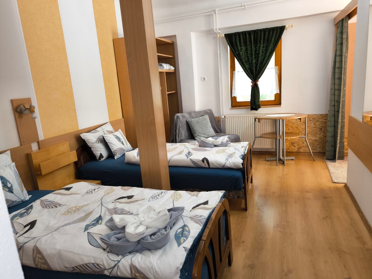 BellaVista Guesthouse is located above the Eger Castle, in a quiet green area. The Eger Castle is only a 5-minute walk away, and the city center and the thermal bath are a 15-minute walk away. Free parking in front of the house Studios or 2-room family apartments with a kitchen. You can be booked as self-catering but breakfast can be requested for an additional fee. There is a covered terrace, yard, and barbecue facilities. We provide a travel cot, high chair, and baby bath for small children.