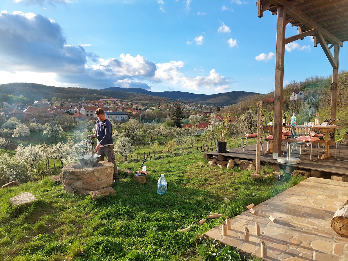 360 °-os körpanorámával , ősfákkal , fedett bográcsozóval és grillezővel , pezsgőfürdővel rendelkező kétszintes , teraszos teljes ház és udvar szomszédok nélkül kiadó. A ház 700 m-re található a Saliris termálfürdőtől, a felújitott nosztalgiafürdő és Campingtől és a világörökséggé nyilvánított sódombtól. Eger belvárosa 10 percre található autóval és a Szépasszonyvölgyi híres borpincék is. Látogassa meg Magyarország, második leglátogatottabb városát Egert. Élvezze a csendet és privát birtokot