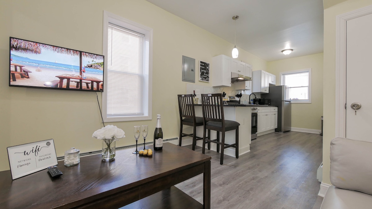 Kick back and relax in this calm, quaint and cozy studio apartment. The space is newly renovated and updated with a kitchenette, queen size bed, TV and a beautiful full bathroom with a large shower. Perfect for couples, a small family or a pair of friends, this apartment is a 10-12 minute walk to the beach and boardwalk. Less than a 5 minute walk to Tropicana Casino. Many local eateries nearby. Enjoy all that Atlantic City has to offer at the Starlite Studio!