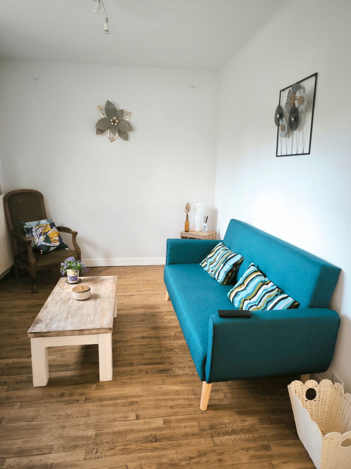 Mon logement est proche du centre-ville (tous commerces, restaurants, cinéma...), plage à 2 km, activités adaptées aux familles. Vous apprécierez mon logement pour son confort et ses équipements. Convient aux couples, voyageurs en solo ou voyageurs d'affaires. Le quartier est calme. Terrain clos, terrasse aménagée pour les repas en extérieur, nous habitons au dessus du logement mais faisons preuve de la plus grande discrétion possible. Cafetière senseo