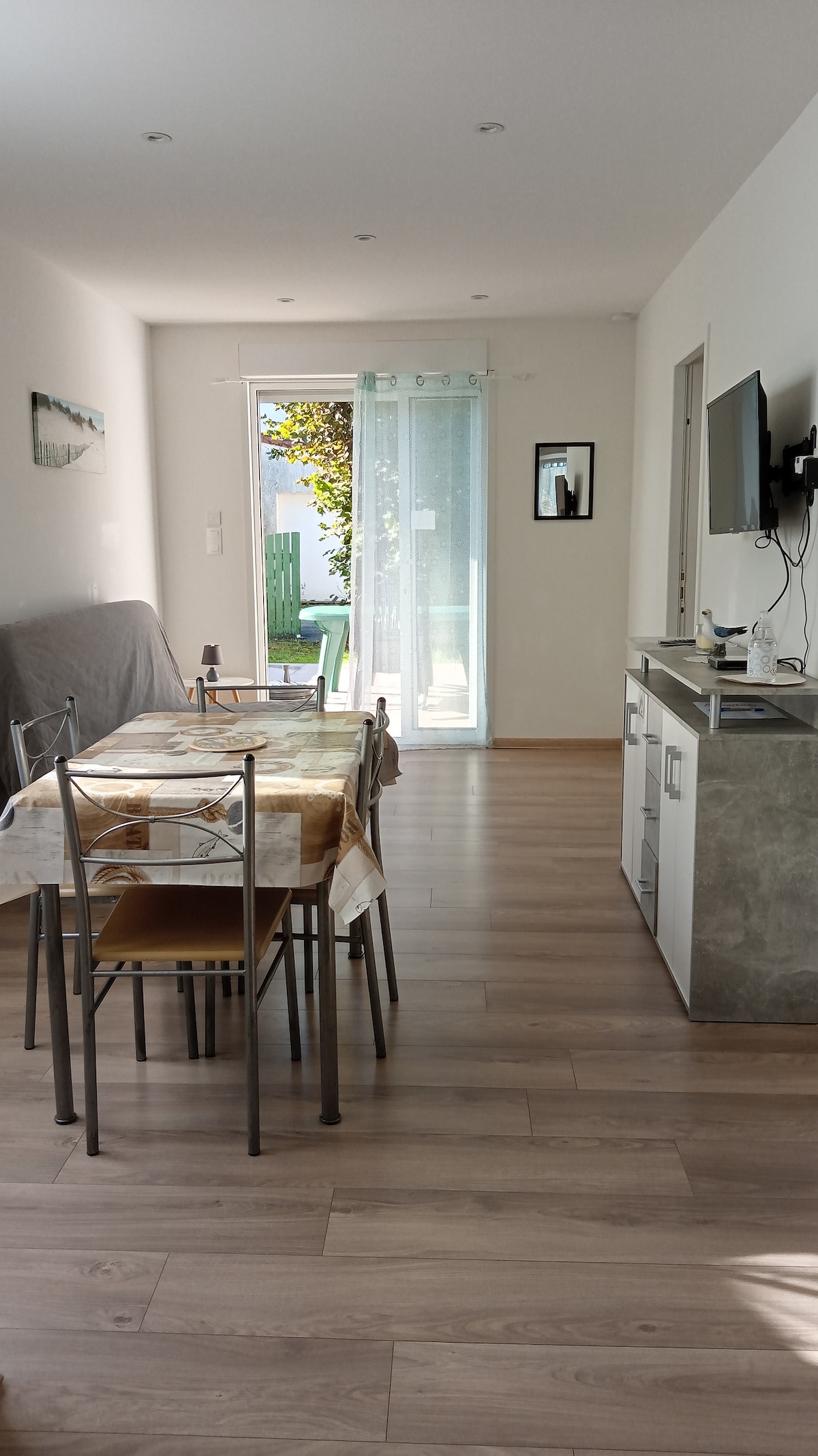 Ce studio cosy et lumineux vous apportera calme et sérénité le temps d'un week end ou de vos vacances. Accueillant jusqu'à 3 personnes vous pourrez profiter de son coin chambre, de sa cuisine aménagée et de son petit jardin. Idéalement situé en plein centre ville de Royan, vous pourrez profiter du marché, des petits commerces, et du front de mer à pied, à moins de 5 minutes. De plus, vous trouverez un parking gratuit à proximité.