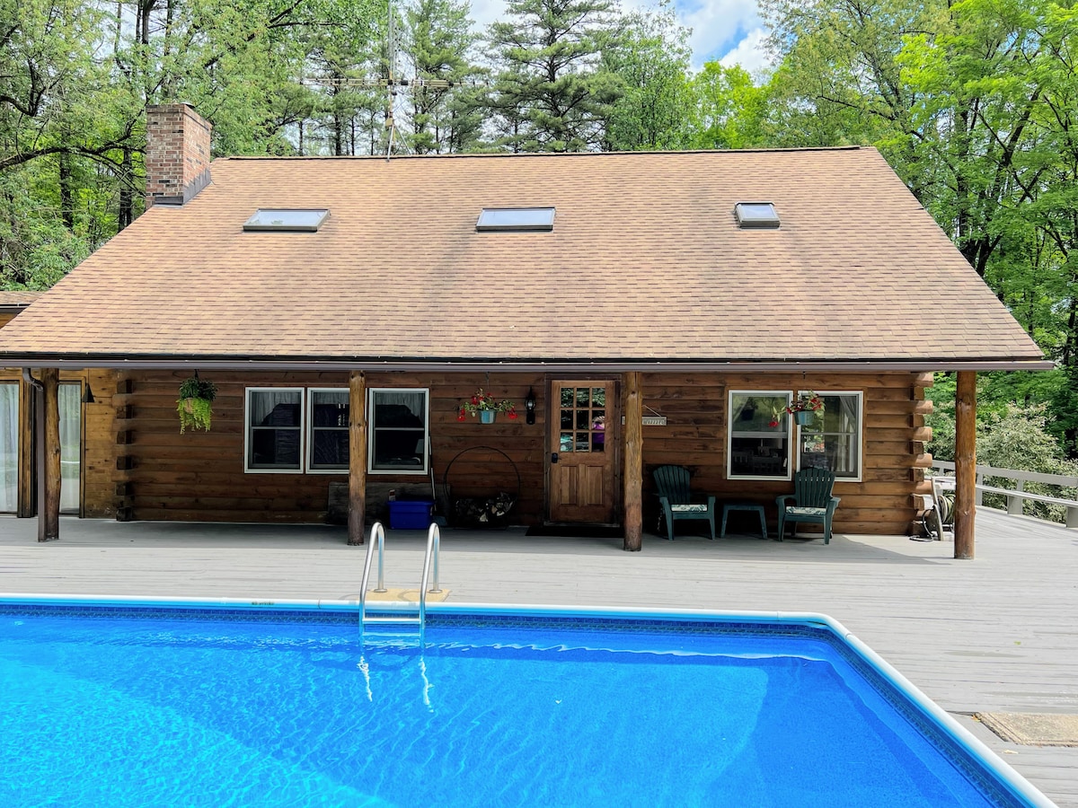 A quiet place to get away from it all. Modern log cabin with 3 bedrooms and lots of amenities. A private heated pool, outdoor spaces, wood-burning fireplace and outdoor fire pit. For those working remotely, there is super-fast WiFi and a designated work space. Close to the best of the Hudson Valley and the Berkshires. There is a large lake nearby for boating, swimming, and kayaking in the warmer months. Skiing and sledding in the winter. Columbia County STR Registration #: COP-2025-015
