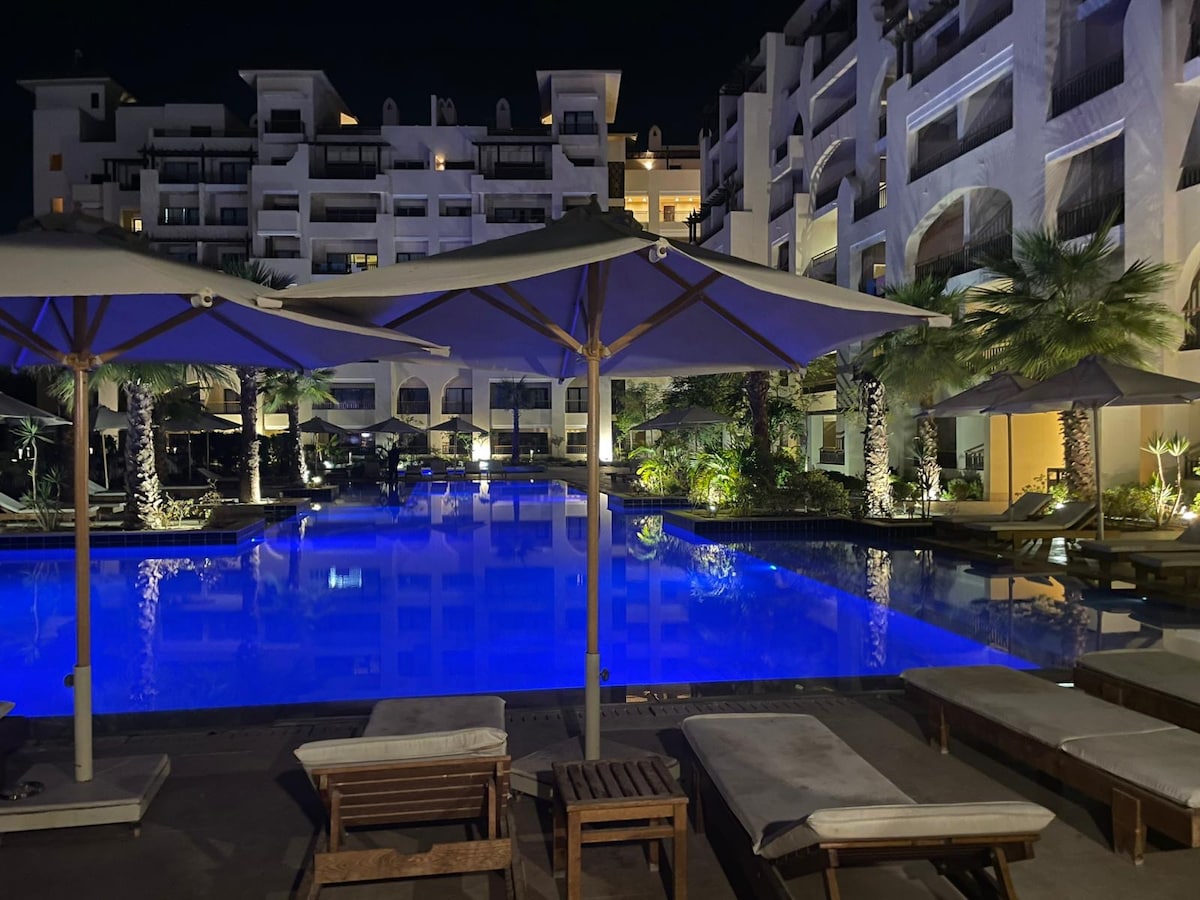 wonderful resort where you can have test of free relaxation ,you own your own junior suite with side view to red sea , with access to all area facilities such as pools and beach , our beach is fully serviced , location is perfect around resort a lot of cafes Arabic and European style , also a lot of super markets to buy what you need for food .