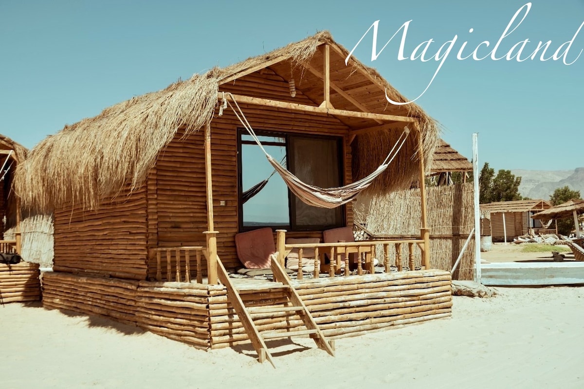 Escape to serenity in our private driftwood cabin, nestled on the shores of the Red Sea. We offer a Private bathroom with hot water. Equipped kitchenette with electric stove, utensils, and cookware. Unwind in tranquility, surrounded by the soothing sounds of the waves. Our cabin is the ultimate hideaway for those seeking a peaceful escape. Experience the perfect blend of natural beauty, comfort, and seclusion. Rejuvenate your senses and rediscover serenity in our little slice of paradise.