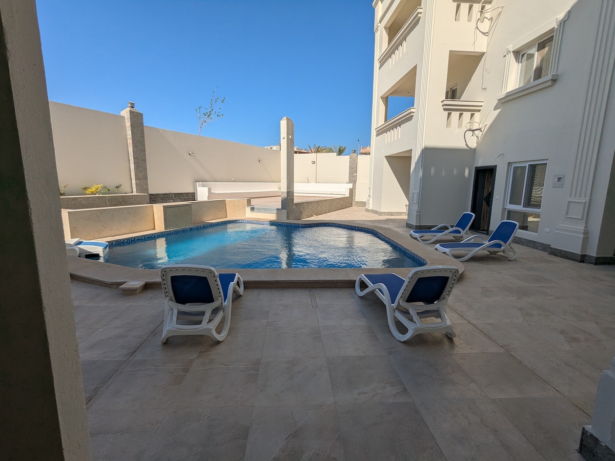 Amazing and Unique in Hurghada, family friendly holiday home or a romantic get away for honeymooners with a large private swimming pool only for you,nothing is shared Spacious livingroom, with open kitchen and toy corner Up, Master bedroom ensuite with shower and a bedroom with kingbed, bunkbed and a Playstation5 Bathroom to fully relax with a big Jacuzzi The villa is fully eqiuped with all what you need We will be honored to welcome you and make your stay amazing and arrange trips for you