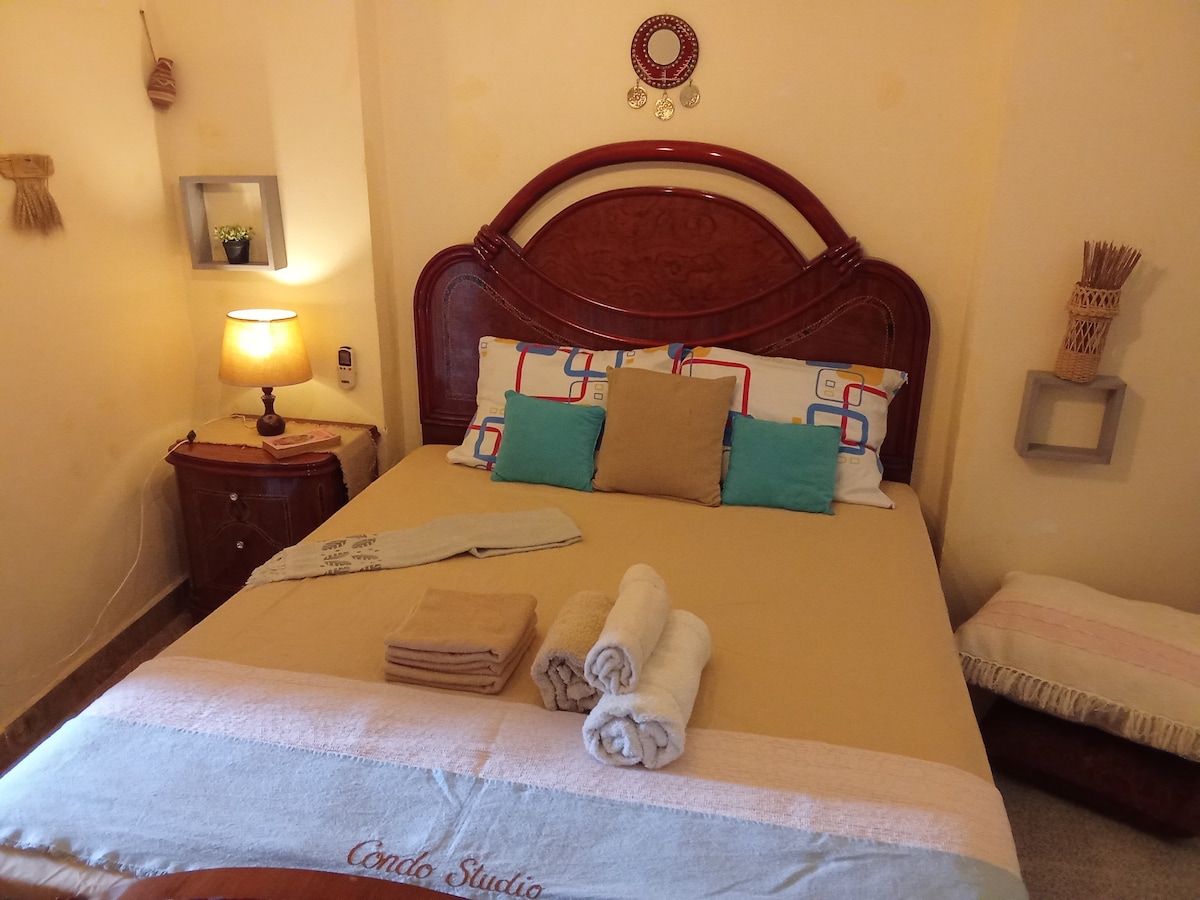 Kindly check our ((HOUSE RULES)) before booking, Welcome to our unique little paradise in the heart of Cairo but away from traffic, noise. It’s a great getaway on an island in the Nile. its one of 4 similar studios. It is a 25 m2 studio, perfect for 5 guests on a 10,000 m2 spacious Farm. A resort for adults, kids with more than 500 peacocks, Parrots, Ostriches, and more. With unique architecture, furniture designs, contemporary artworks there is a private bathroom and kitchenette in each studio.