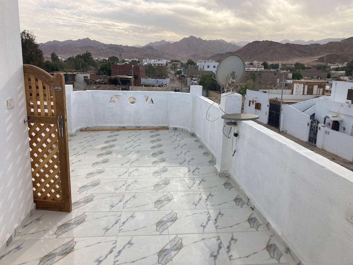 In this place, you'll love the most fabulous breathable air and enjoy the most amazing unique high views of the sea and mountains in Dahab. Whether you're working at your comfortable desk or relaxing on your spacious terrace, this place has it all. Also, it's conveniently located in the center of Asala, Dahab, only a short 10-minute walk from the beach. Please note that, the sleeping arrangements are only 2 single beds, and there are extra couches on the outside terraces areas